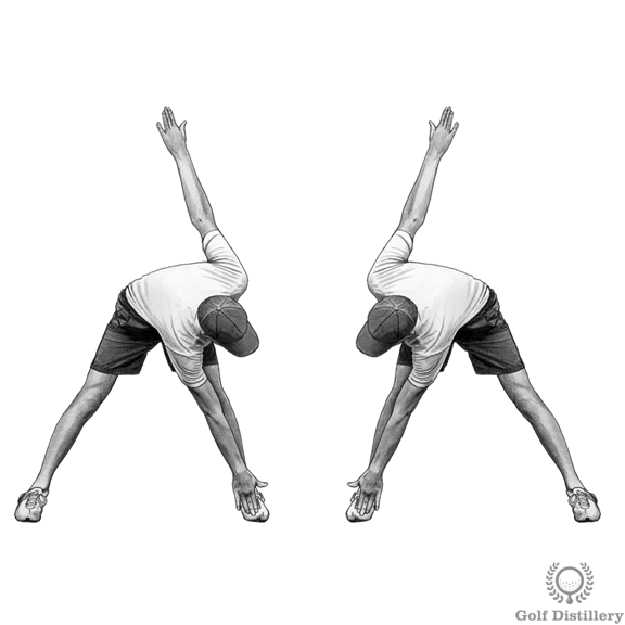 Stand straight hands up legs should be closed first rotate to your right and come back to the original position and then rotate to your left slowly and comeback and rotate to your right again stretches your upper body completely just do it for 20 seconds.