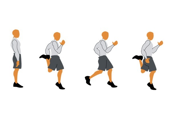 The move:- Stand straigth with your feet shoulder-width apart. Bring your knees to the waist level and do as fast as you can.